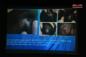 الاستشاري في أمراض وجراحة الأذن والأنف والحنجرة وزراعة الحلزون، الدكتور جمال قسومة عرض خلال محاضرته آلية إجراء عملية جراحة الحلزون المناسب لحالة المريض، إضافة لعرض أبحاث متنوعة حول العمليات التي تم إجراؤها، مشيراً إلى أن الأوضاع التي مرت بها سورية أدت إلى تراجع عمليات زراعة الحلزون، فيما لا تزال الكوادر محافظة على مستوى عالٍ بالإجراءات والتدابير الطبية.