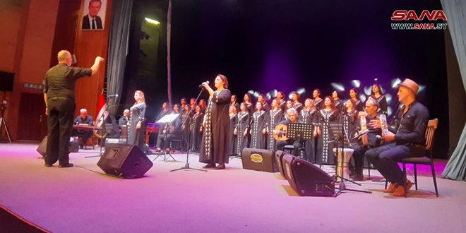 الأمسية التي نظمها المسرح القومي بحمص أبرزت دور المرأة العربية في المشهد الموسيقي عبر كورال يحتضن 35 سيدة تتراوح أعمارهن بين 35 و55 عاماً منهن الطبيبة والمهندسة والمعلمة والمحامية والأستاذة الجامعية وربة المنزل.