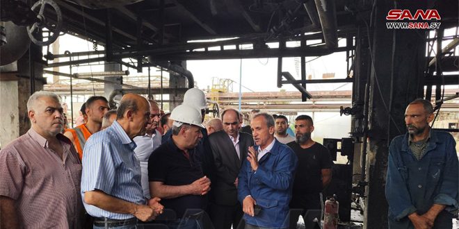 اطلع وزير النفط والثروة المعدنية، الدكتور فراس قدور على الأضرار التي نجمت عن الحريق الذي نشب في الوحدة 100 بمصفاة حمص، منوهاً بالجهود الكبيرة التي بذلتها فرق الإطفاء والدفاع المدني في التعامل مع الحادث بمهنية عالية.