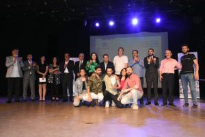 وفاز عرض “المدينة الفاضلة” لفرقة جامعة تشرين بجائزة أفضل عرض جماعي متميز من تأليف عباس الحايك وإخراج رغداء جديد.