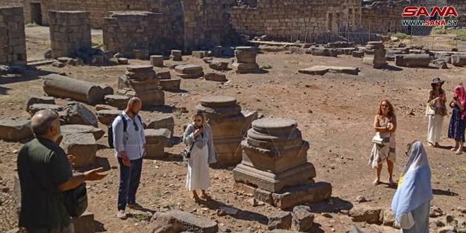 وصلت اليوم إلى مدينة بصرى الشام الأثرية مجموعة سياحية من جنسيات مختلفة تضم أطباء وطلبة جامعيين وخبراء سياحة ومهندسين ومتقاعدين، للاطلاع على معالمها التاريخية.