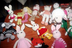 السيدة سلمان التي تسكن في مدينة طرطوس وكانت تصنع الألبسة لأسرتها بحياكة الصوف التي تعلمتها منذ الصغر من والدتها، قالت في حديثها لمراسلة سانا: “كانت بداية عملي تقتصر على صنع الدمى والهدايا من مادة الصوف باستخدام الصنّارة حسب القطعة المراد صنعها، ووفق طلب الزبون لأطوره لاحقاً بعد أن لاقت منتوجاتي القبول والاستحسان ما شجعني على العمل أكثر”.
