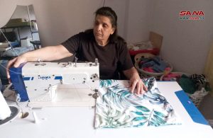 تخطت فادية عامر من محافظة السويداء ظروف إعاقتها وسنوات عمرها التي اقتربت من الستين عاماً، لتنجح مؤخراً بإطلاق مشروع صغير لخياطة وتصنيع الملابس ومستلزمات المنزل المختلفة كالستائر والشراشف والمناشف والأغطية وغيرها.