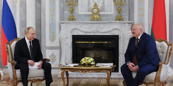 وخلال لقائه الرئيس البيلاروسي ألكسندر لوكاشينكو في مينسك اليوم قال بوتين: “نحن على اتصال دائم ومن الضروري تحديد الخطوات الملموسة لتطوير العلاقات بين روسيا وبيلاروس التي تتطور وتقف بثقة على قدميها”.