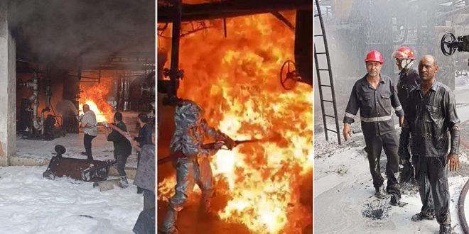 لم يكن حريق الوحدة 100 في مصفاة حمص الذي وقع مؤخراً حدثاً عابراً، فقد سجل مشاهد لا تُنسى من شجاعة وإقدام عناصر الاطفاء والدفاع المدني وعمال المصفاة الذين واجهوا النيران المشتعلة بشدة، بكل إرادة وإصرار على إخمادها والحد من أضرارها على المصفاة.