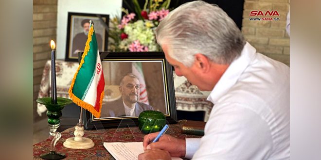 وجدد كانيل التأكيد على دعم كوبا للشعب الإيراني الشقيق وقيادته للدفاع عن الأمنيات العظيمة للسلام والازدهار اللذين كرّس الرئيس رئيسي حياته لهما وطنياً وإقليمياً ودولياً.