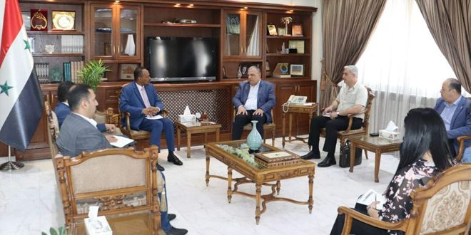 بحث وزير الزراعة والإصلاح الزراعي المهندس محمد حسان قطنا اليوم مع القائم بالأعمال بالإنابة لسفارة جمهورية السودان في سورية الدكتور أحمد إبراهيم الحسن علاقات التعاون في المجال الزراعي، وآليات تبادل المنتجات وتطوير الاتفاقيات الثنائية وتفعيلها وفق برنامج زمني محدد.
