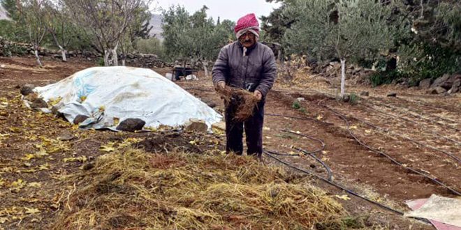 السعدي 65 عاماً مدرس كيمياء ورئيس بلدية سابق، أوضح خلال حديثه لمراسل سانا أن الهدف من أعماله تحقيق الاكتفاء الذاتي ومساعدة الآخرين في هذا المجال انطلاقاً من أهمية العمل الزراعي في دعم الاقتصاد الوطني.
