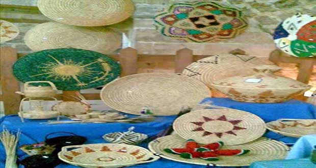 وعرضت الحرفية إبراهيم طريقة صناعة أطباق القش والأدوات البسيطة التي تستخدمها كالقش والمخرز والمقص قائلة إنها حرفة تجمع بين الإبداع والتراث والفن لأنها كانت في الماضي تزين جدران البيوت الطينية من الداخل وعليها النقوش والزخارف المختلفة.
