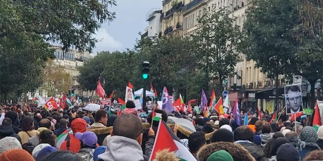 وذكرت وكالة فرانس برس ان ساحة الجمهورية في وسط باريس اكتظت بالمحتجين الذين رفعوا الأعلام الفلسطينية ولافتات كبيرة تطالب بوقف جرائم الإبادة الجماعية بحق الفلسطينيين في قطاع غزة.