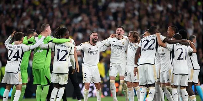 توج ريال مدريد الإسباني بطلاً لدوري أبطال أوروبا لكرة القدم بعد فوزه على بروسيا دورتموند الألماني بهدفين نظيفين في المباراة التي جمعتهما اليوم على ملعب ومبلي في العاصمة البريطانية لندن.