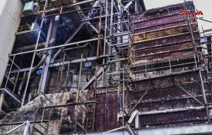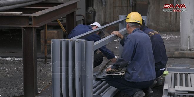 من قسم اللحام، أشار العامل الفني موسى ديوب إلى أن العمل جار على لحام الدارة السفلية والأرضية للمسخن الذي تعرض للتلف والتآكل.