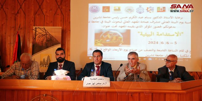 بمناسبة يوم البيئة العالمي، أقام المعهد العالي لبحوث البيئة بجامعة تشرين اليوم مؤتمره السنوي تحت عنوان “الاستدامة البيئية” بمشاركة معاهد وكليات من جامعات دمشق وحلب وطرطوس والمنارة الخاصة ومؤسسات وهيئات بحثية وجمعيات أهلية، ويتناول المؤتمر على مدار يومين عدة محاور، أبرزها تقليل انبعاثات الكربون والحفاظ على الموارد الطبيعية والحد من النفايات والتلوث وتعزيز المجتمعات المستدامة، كما يتضمن معرضاً بيئياً يحتوي على أعمال يدوية من مخلفات البيئة.