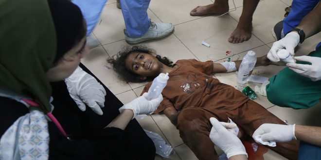 وذكرت وسائل إعلام فلسطينية أن قوات الاحتلال قصفت مدرسة تؤوي آلاف النازحين في مخيم النصيرات، ما أدى إلى استشهاد نحو 40 فلسطينياً، معظمهم أطفال ونساء، وإصابة العشرات بينهم حالات خطيرة، فيما لا تزال أعداد هائلة من الضحايا تصل إلى مستشفى شهداء الأقصى.