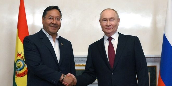وقال بوتين خلال لقائه رئيس بوليفيا لويس آرسي في موسكو اليوم: إن “التبادل التجاري بين روسيا وبوليفيا لا يزال قليلاً إلا أن هناك آفاق تعاون اقتصادي جيدة”، لافتاً إلى أن “حجم التجارة ارتفع العام الماضي بنسبة 2.5 بالمئة، وهو يتمتع باتجاهات نمو جيدة”.