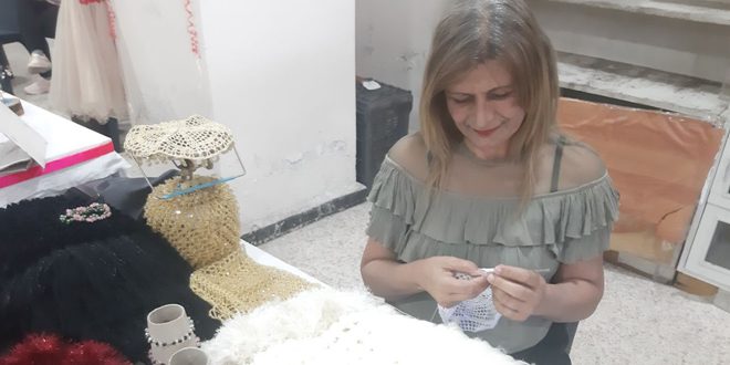 القطع التي تصنعها عليا كالشالات والأغطية وغيرها تستغرق وقتاً وجهداً لإنجازها تماشياً مع أعمال الصنارة، وذلك رغم وجود تلف لديها بالعصب وهشاشة بالعظام تسبب بها مرضها، لافتة في الوقت نفسه إلى تلقيها المساعدة بالعمل أحياناً من زوجها وابنها.