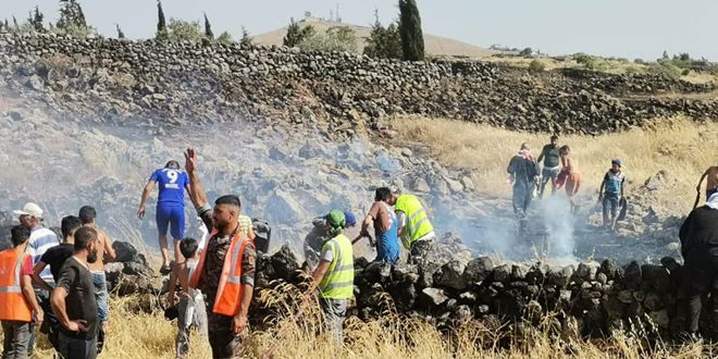 أخمدت عناصر الإطفاء بالسويداء اليوم حريقاً واسعاً نشب في الأراضي الواقعة بين قرى داما عريقة والخرسا بريف المحافظة.