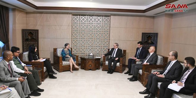 ووضع الوزير المقداد الوفد الأممي في صورة الأوضاع الإنسانية والمعيشية في سورية والتي سببتها الحرب الإرهابية عليها والإجراءات الاقتصادية الأحادية اللاشرعية واللاإنسانية التي تفرضها بعض الدول على الشعب السوري واستمرار نهبها لثرواته، مؤكداً على الدور الإيجابي الذي يقوم به برنامج الأمم المتحدة الإنمائي لتنفيذ مشاريع تنموية تنعكس إيجاباً على الشعب السوري.