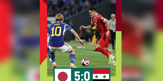 خسر منتخب سورية بكرة القدم أمام مضيفه الياباني بخمسة أهداف دون رد اليوم في الجولة السادسة والأخيرة من دور المجموعات للتصفيات المشتركة لكأس العالم وكأس آسيا.
