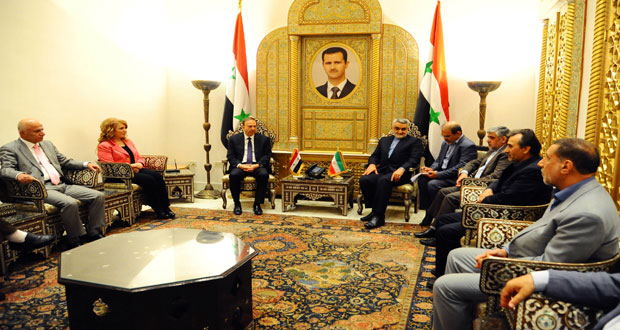 حضر اللقاء رئيسا لجنة الشؤون العربية والخارجية والمصالحة الوطنية في مجلس الشعب والسفير الايراني بدمشق محمد رضا رؤوف شيباني.