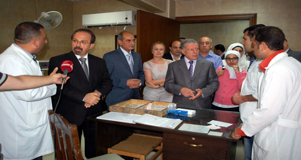 وقال وزير الصحة “إن الواقع الصحي في محافظة حماة جيد مقارنة مع حجم الضغوط والتحديات التي تواجهها في ظل الظروف الراهنة واستهداف خطوط المياه والكهرباء والمؤسسات الصحية والعاملين فيها” منوها بالمستوى المتميز للخدمات العلاجية والاسعافية في مشفى حماة الوطني والدور العلاجي المهم الذي توءديه للمواطنين ولا سيما في الظروف الحالية.