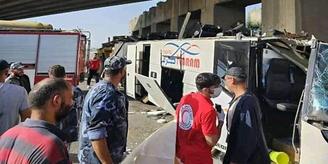وأوضح عضو المكتب التنفيذي لقطاع النقل دريد مرتكوش لمراسل سانا أنه فور الإبلاغ عن الحادث توجهت سيارات الإسعاف وفرق الإنقاذ من شرطة المرور وناحية الهنادي وفوج الإطفاء لانتشال العالقين في الباص ونقلهم إلى مشفى تشرين الجامعي ومشفى العثمان الجراحي.