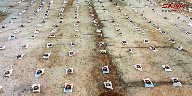 وأوضح مصدر أمني في تصريح لمراسل سانا أنه “من خلال المتابعة الأمنية والرصد الدقيق لتحركات الإرهابيين في منطقة البادية تمت مصادرة كميات كبيرة من حبوب الكبتاغون المخدرة أثناء محاولة تهريبها عبر منطقة التنف إلى إحدى دول الجوار، بالتنسيق مع مجموعات إرهابية أخرى متواجدة في منطقة الـ 55 التي تحتلها القوات الأمريكية”.