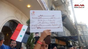 وبدأ الاحتفال بمسير كشفي شارك فيه المواطنون حاملين المشاعل واللافتات الداعية لعدم نسيان حقوق شهداء الإبادة السريانية وعبارات الشكر لسورية على احتضانها السريان كمكون فعّال ضمن مكوناتها الاجتماعية كافة.