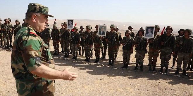 والتقى العماد عباس القادة الميدانيين واستمع منهم إلى شرح مفصل عن طبيعة المهام المسندة إليهم، وشدد على أهمية الحفاظ على الجهوزية القتالية واليقظة العالية لترسيخ الأمن والاستقرار ومنع الأعداء والمتآمرين من استهداف أرضنا وأبناء شعبنا، مؤكداً أن الإنجازات التي حققتها قواتنا المسلحة في محاربة الإرهاب ستبقى ضمانة صمود شعبنا في المستقبل، فقوة جيشنا الباسل نابعة من احتضان شعبه الأبي والاهتمام الكبير من السيد الرئيس الفريق بشار الأسد الذي أولى قواتنا المسلحة كل الرعاية إيماناً من سيادته بعظمة دورها في الدفاع عن الوطن وصون عزته وكرامته.