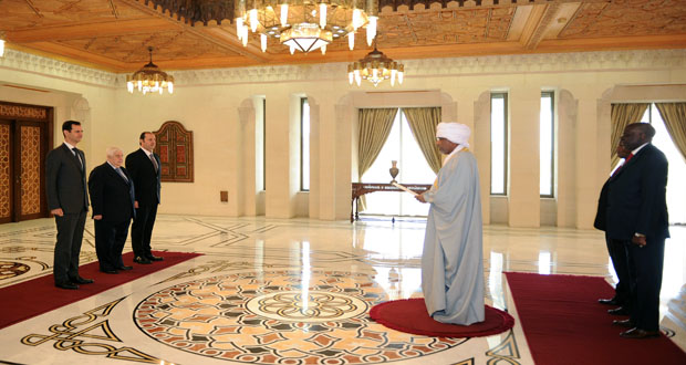 واستقبل الرئيس الأسد السفير السوداني وتبادل معه الحديث وتمنى له النجاح في مهامه.