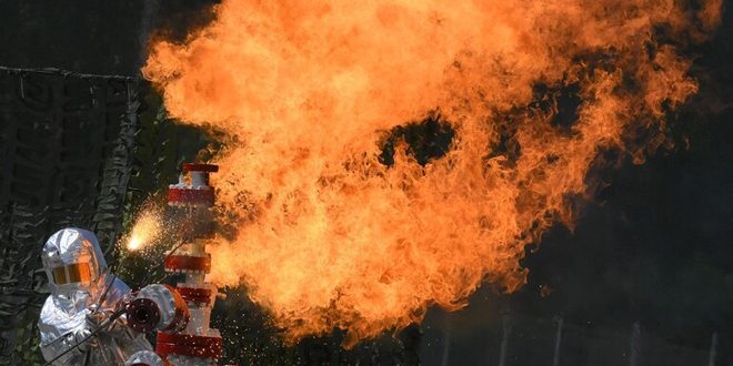 اندلع حريق في خزان للمنتجات البترولية في مقاطعة روستوف جنوب غرب روسيا جراء هجوم إرهابي أوكراني بالطائرات المسيرة.