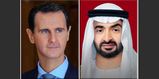 تبادل السيد الرئيس بشار الأسد والشيخ محمد بن زايد آل نهيان رئيس دولة الإمارات العربية المتحدة التهنئة بعيد الأضحى المبارك خلال مكالمة هاتفية بينهما.