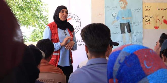 بهدف التعريف بأهمية التبرع بالدم ونشر الوعي الصحي بذلك تزامناً مع اليوم العالمي للمتبرعين بالدم نفذ متطوعو فرع الهلال الأحمر العربي السوري بدرعا عدداً من الزيارات المنزلية وجلسات التوعية قدموا خلالها معلومات واستشارات صحية شاملة حول ذلك بعدد من مناطق المحافظة.