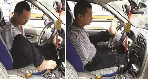 وذكرت صحيفة الشعب الصينية أن شرطة مدينة “إكسيانتاو” في مقاطعة “هوبي” وسط الصين أوقفت وو غاو 45 عاما في فحص روتيني على الطريق حيث اكتشفوا أنه يقود بلا ذراعين ويستخدم قدميه لتوجيه عجلة القيادة والتحكم بالسرعة.