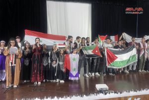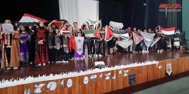 وقدم الطلبة عرضاً مسرحياً ومجموعةً من الأغاني تعكس الحضارة والتراث السوري، مؤكدين تمسكهم بتاريخهم وثقافتهم ودفاعهم عن القضايا العادلة.