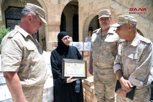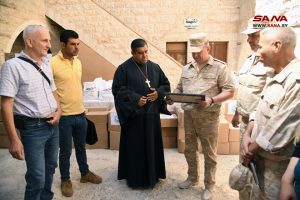 وكان عسكريون روس من مركز التنسيق الروسي قدموا في الثالث والعشرين من آذار الماضي مساعدات إنسانية لديري القديسة مارتقلا في معلولا وسيدة صيدنايا بريف دمشق.