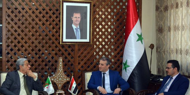 واستعرض الوزير جوخدار فرص التعاون والاستثمار وآليات تبادل الخبرات بين الشركات الصناعية في البلدين الشقيقين، مثمناً وقوف الجزائر قيادةً وشعباً إلى جانب سورية وشعبها.