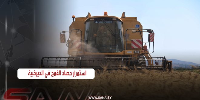 ريف دمشق-سانا يواصل فلاحو قرية الديرخبية بريف دمشق عملية حصاد محصول القمح التي بدأت في …