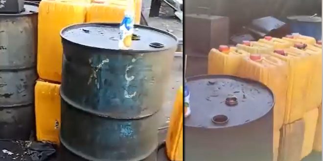 ضبطت مديرية مكافحة التهريب في الجمارك العامة بالتعاون مع لجنة ضبط المخالفات في شركة محروقات خزانات سرية لتخزين مادة المازوت والاتجار بها في مركز لصيانة الآليات في منطقة صحنايا بريف دمشق.