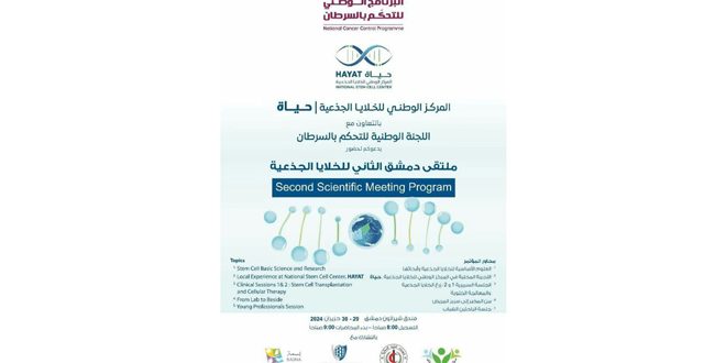 تنطلق يوم الغد فعاليات ملتقى دمشق الثاني للخلايا الجذعية الذي يقيمه المركز الوطني للخلايا الجذعية (حياة) بالتعاون مع اللجنة الوطنية للتحكم بالسرطان في فندق الشيراتون بدمشق.