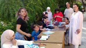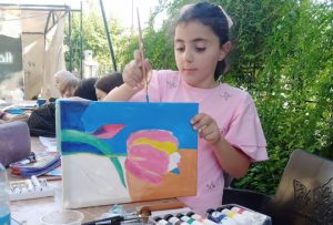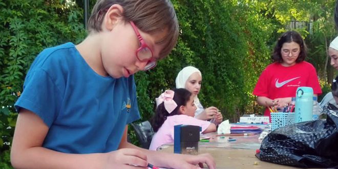 أقامت جمعية بيت الخط العربي والفنون على مدى يومين ورشة عمل فنية مجانية للأطفال للأعمار بين 8 و10 سنوات في حديقة المركز الثقافي العربي بأبو رمانة، وذلك ضمن فعاليات مهرجانها الفني التشكيلي الرابع.