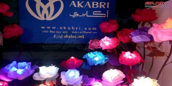 إلى جانب الأجنحة التي تحتفي بنباتات الزينة والورود في معرض الزهور الدولي، تطل تجربة فنية مميزة لفريق يضم ثلاثة شبان قدموا مشروعاً متميزاً يحمل عنوان (أكابري)، لمشغولات يدوية فنية صنعوا فيه مجسمات إضاءة للمبديرات وأزهارأ بأشكال متعددة وجذابة.
