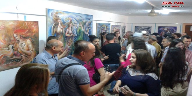 نحو 22 عملاً بتقنية الألوان الزيتية قدمتها الفنانة التشكيلية ناديا نعيم في معرضها الفني “امرأة الألوان” الذي افتتحه فرع اتحاد الكتاب العرب بالسويداء اليوم ضمن مقره.