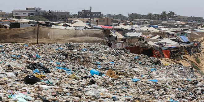 حذرت وكالة الأونروا التابعة للأمم المتحدة من كارثة صحية تهدد وسط قطاع غزة جراء تراكم أطنان من النفايات باتت تحاصر خيام النازحين في المنطقة، في ظل تسرب مياه الصرف الصحي وانتشار الأمراض المعوية والجلدية.