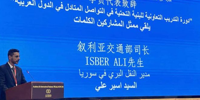 تشارك سورية ممثلة بوفد من وزارة النقل السورية في دورة التدريب التعاونية للبنية التحتية وبناء وإدارة الخدمات اللوجستية المقامة في بكين عاصمة جمهورية الصين الشعبية بعنوان “التعاون والتواصل والترابط المتبادل في البنية التحتية للدول العربية وإدارة وبناء الخدمات اللوجستية” والتي تستمر حتى الـ 18 من تموز الجاري.