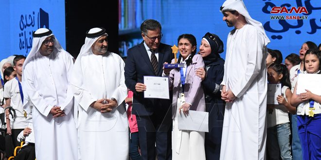وتضمن الحفل الختامي عرض برومو توثيقي عن مراحل مسابقة تحدي القراءة العربي في سورية بالموسم الثامن، وعرضاً مسرحياً راقصاً بعنوان “أبطال الحكايات” الذي قدمته كوادر المسرح المدرسي في مديرية الأنشطة الفنية والرياضية بوزارة التربية.