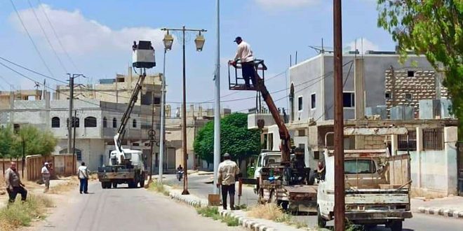 أنهى قسم الكهرباء في مدينة بصرى الشام تركيب وحدات إنارة بالطاقة الشمسية بقدرة 600 واط، بالتعاون مع برنامج الأمم المتحدة الإنمائي UNDP لإنارة محيط منطقة الفرن الآلي.