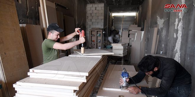أما الحرفي عبدو حسن خشين فأكد أنه لا يوجد بديل لديه عن حرفة النجارة، فهي مصلحته وأساس معيشته، لهذا عمل جاهداً بعد عودته للمدينة على ترميم ورشته التي كانت مدمرة، وتمكن تدريجياً من التوسع في الإنتاج واستعادة زبائنه، واصفاً حركة البيع والشراء بالمقبولة بعد عودة نحو 80 بالمئة من الحرفيين، لكنه تمنى توفير مادة المازوت للحرفيين أو إيصال خط كهرباء معفى من التقنين للورشات.