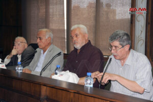 وتناولت الندوة ثلاثة محاور رئيسية، هي “الديمقراطية ما بين الحق والواجب”، و”الديمقراطية ما بين النظرية والتطبيق”، و”التجربة الديمقراطية في سورية عبر التاريخ منذ عام 1920 مروراً بدستور 2012 وحتى انتخابات مجلس الشعب الحالية”.