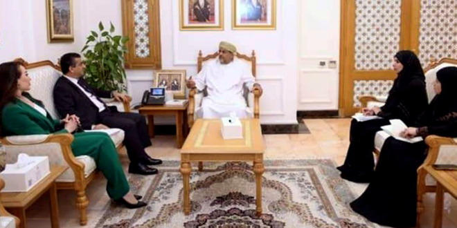 بحث سفير سورية في سلطنة عمان الدكتور إدريس ميا مع الدكتور سعيد بن محمد الصقري وزير الاقتصاد رئيس الجانب العُماني في اللجنة الحكومية السورية العُمانية المشتركة سبل تعزيز التعاون المشترك وتطوير العلاقات الثنائية بين البلدين.
